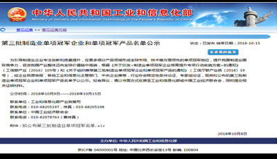 10 月8 日,工业和信息化部产业政策司公布了《关于第三批制造业单项冠军企业和单项冠军产品名单公示》,新疆星空·体育-星空(中国)一站式服务官方网站公司根据《关于印发< 制造业单项冠军企业培育提升专项行动实施方案> 的通知》(工信部产业〔2016〕105 号)和《关于组织推荐第三批制造业单项冠军企业和单项冠军产品的通知》(工信厅联产业函〔2018〕19 号)要求,组织材料申报了制造业单项冠军产品- 异亮氨酸,截至目前已顺利通过审核并公示,公示于10 月15 日结束。异亮氨酸单项冠军产品的成功授予, 将形成全球市场、技术等方面领先的单项冠军地位,提升新疆星空·体育-星空(中国)一站式服务官方网站公司的国际竞争力。